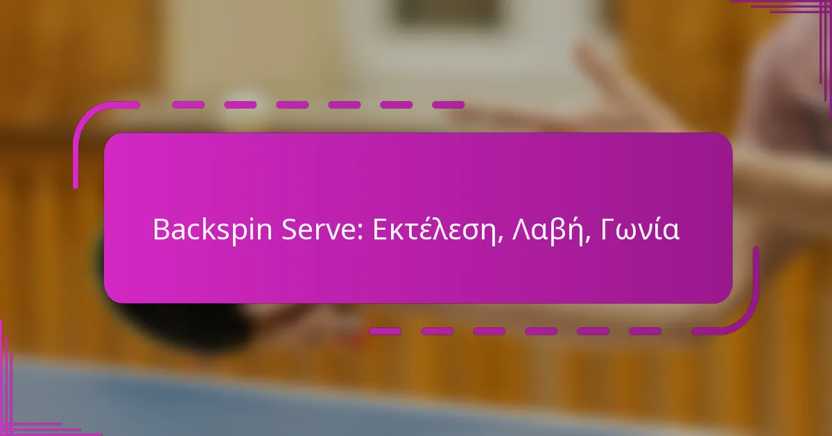 Η υπηρεσία με πίσω σπιν είναι μια στρατηγική τεχνική στο πινγκ πονγκ που δημιουργεί μια οπίσθια περιστροφή στην μπάλα, καθιστώντας δύσκολη την επιστροφή από τους αντιπάλους. Για να εκτελέσετε αυτή την υπηρεσία αποτελεσματικά, εστιάστε στη λαβή, τη θέση του σώματος και τη γωνία της ρακέτας σας κατά την επαφή.