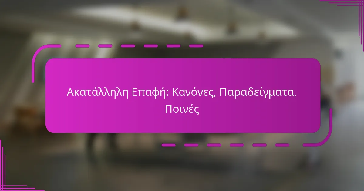 Η ακατάλληλη επαφή αναφέρεται σε ενέργειες που παραβιάζουν καθιερωμένους κανόνες ή νόρμες σε διάφορα πλαίσια, όπως αθλήματα, νομικές ρυθμίσεις και χώροι εργασίας. Αυτές οι ενέργειες μπορεί να οδηγήσουν σε ποινές, νομικές συνέπειες ή πειθαρχικές ενέργειες στον χώρο εργασίας.